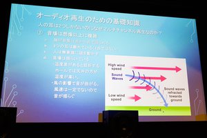 専門性の高い話となるので非常に簡略化した説明となるが、人間の耳には、ある周波数、例えば440Hz周辺(ラの音)の音が再生された状態では、それに近い周波数の音はマスキングされて聴き取りづらくなる、という特性がある。また人間の耳は左右に二つあるため、わずかながらそれぞれの耳への「到達時間の違い」が発生する。この到達時間の違いによって、人間は音の発生源やその距離を認識することができる。