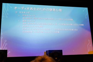 音楽制作においてもステレオではなく「イマーシブ」(多チャンネル)を必要とする理由について、入交氏は「音場は非常に複雑な条件で生成されること」、そして「人間の聴覚心理によってマスキングされてしまう周波数帯域があること」の2点があると指摘する。