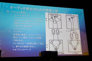とはいえ、やみくもにスピーカーをたくさん設置すれば良い、というわけではもちろんない。人間の耳に「定位感」として聴き取れるためにはどの程度のスピーカー間の距離や角度(仰角)が適切か、という課題もある。そういった課題について人間の知覚心理から紐解いていくと、AURO-3Dのセッティング方法が非常に理にかなっているのではないか、というのが入交氏の考え方である。