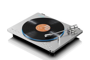 回転速度は33 1/3回転と45回転に対応し、背面のスイッチからは7インチ/12インチレコードの再生モードを切り替え可能。ほか、L/Rチャンネルバランス調整機能、7種類(紫/赤/オレンジ/青/シアン/緑/白)のライティング機能なども備える。S/Nは≧75dBでTHD+Nは≦3.5%、ノイズフロアは<150μV、ワウフラッターは≦0.15% WRMS(33 1/3回転)、3kHz。