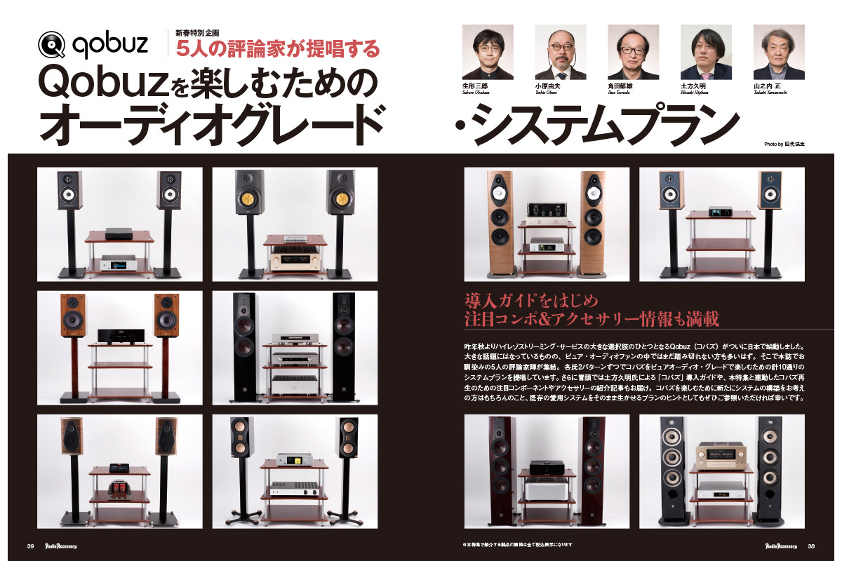 その特集内では「5人の評論家が提唱する Qobuzを楽しむためのオーディオグレード・システムプラン」という、とっておきの企画を用意しています。ビュア・オーディオファンの中ではまだハイレゾストリーミングに踏み切れない方も多いと思います。そこで本誌でお別染みの5人の評論陣が集結。各氏2パターンずつQobuzをビュアオーディオ・グレードで楽しむためのシステムプランを合計10プラン提唱しています。