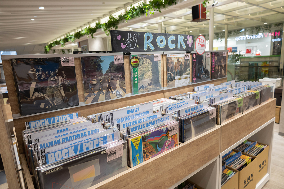 HMV record shop新宿の床面積は約60坪、新品・中古を問わずレコード約4万枚を在庫する。ふらりと入りやすい明るい雰囲気も特徴で、ロック・ポップスを中心に、ソウルやジャズ、ブラジル音楽などのワールドミュージック、7インチ盤など幅広い。「クラシック以外のほぼすべてのジャンルを取り揃えていますよ」と広報担当者も品揃えには自信を見せる。