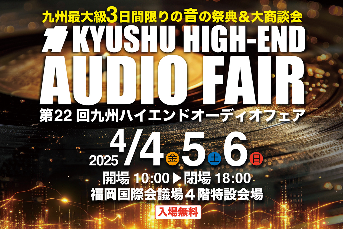マックスオーディオが主催する「第22回九州ハイエンドオーディオフェア」が、4月4日(金)から6日(日)までの3日間、福岡国際会議場にて開催される。入場は無料。