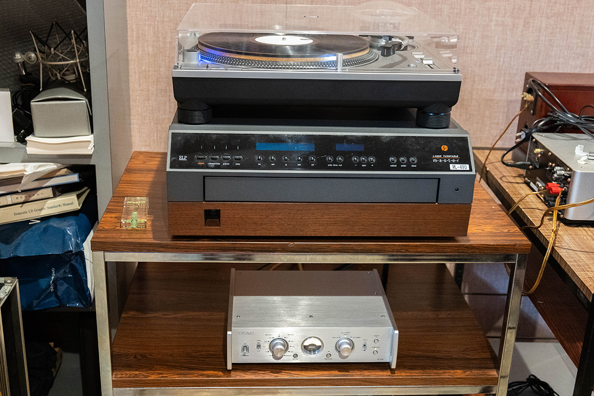 ノイマンのカッティングマシン「VMS80」が置いてあるマスタリングルームは、主にベテランエンジニアの北村勝敏さんが利用している。こちらにももちろんチェック用のアナログプレーヤーが置いてあるが、制作件数の増加により、「自分がメインで使う部屋にもアナログがちゃんと聴けるシステムが必要だ」と加藤さんは考えた。