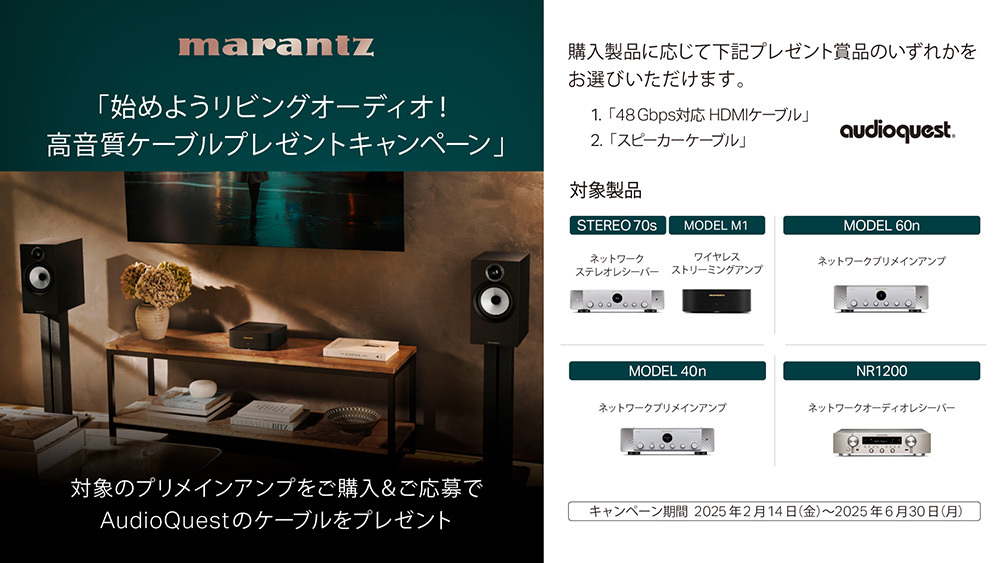 同社によれば、2月14日(金)から6月30日(月)まで実施している「始めようリビングオーディオ!高音質ケーブルプレゼントキャンペーン」が当初の想定を大幅に超える好評となり、キャンペーン対象である上記2モデルの同社在庫が一時的に払底してしまったとのこと。
