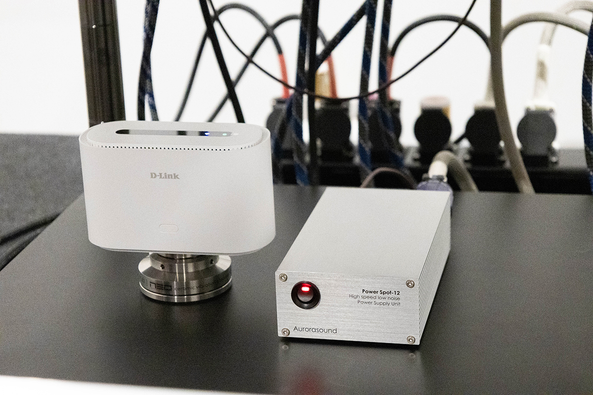 また、国内では未展開のオーロラサウンド製強化電源も発見。特別に作ってもらったものだそうで、同社スタッフも「ルーターにこの強化電源を使うと、アナログも含めたシステム全体がアップグレードできるんです!」と鼻息荒い。また光城精工については、「電源コンセントに挿すCrystal Eop-Gの効果が、使い方はシンプルですが効果がすごいんです」と熱心に来場者に説いて回っていた。