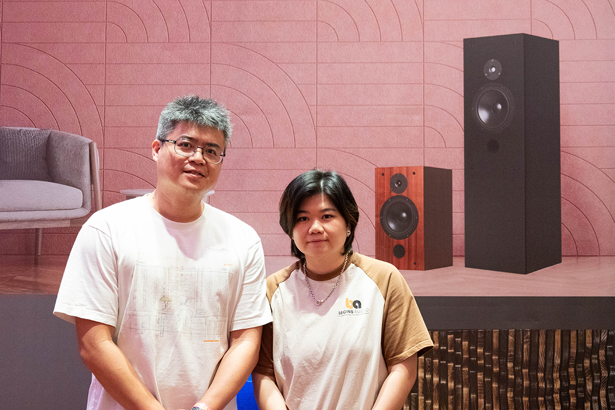 ティグロンのケーブルは、Begins Acousticのブースにて展開されていた。この会社は、エンジニアの女性・ケニックスさんがCEOを務めており、ルームチューニング関連アイテムからビジネスをスタートさせた勢いのある会社。スピーカーは台湾の注目株・Lu Kang Audio、またティアックの500番シリーズのアンプを組み合わせて、アコースティック豊かなサウンドを聴かせる。