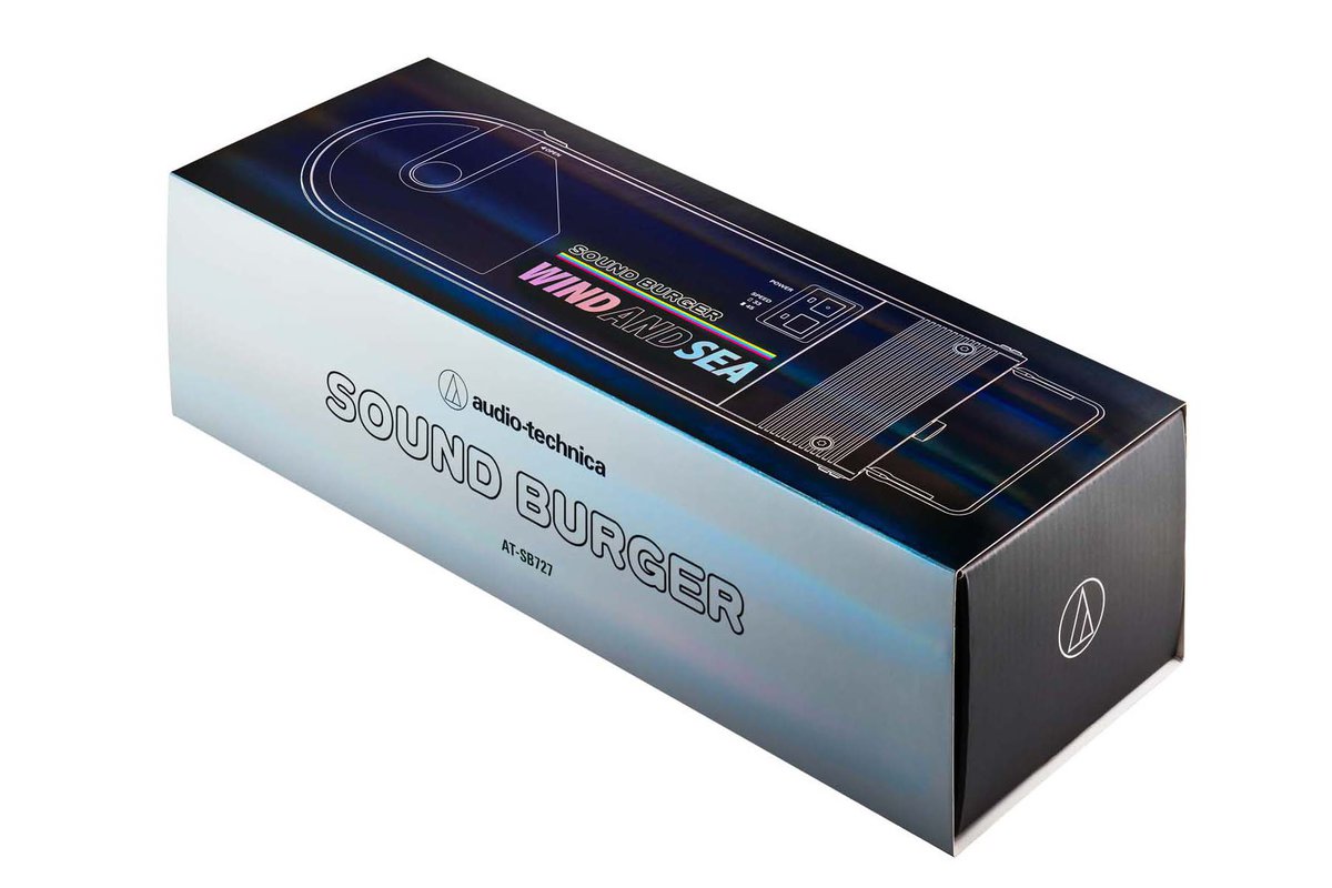 オーディオテクニカは、同社のアナログプレーヤー “サウンドバーガー” と、アパレルブランド「WIND AND SEA(ウィンダンシー)」とのコラボレーション第2弾を発表。サウンドバーガーの限定コラボモデル「AT-SB727 WS」を、5月12日 12時より公式オンラインストアにて販売開始する。価格は39,600円(税込)で、数量限定での販売となる。