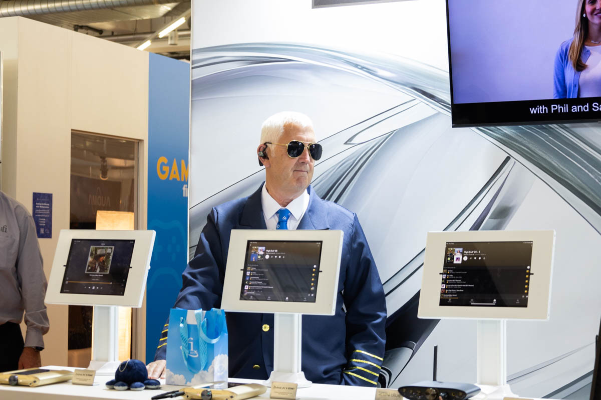 パイロット風のコスチュームで登場したグローバルセールス担当のマイルス・ロバーツ氏