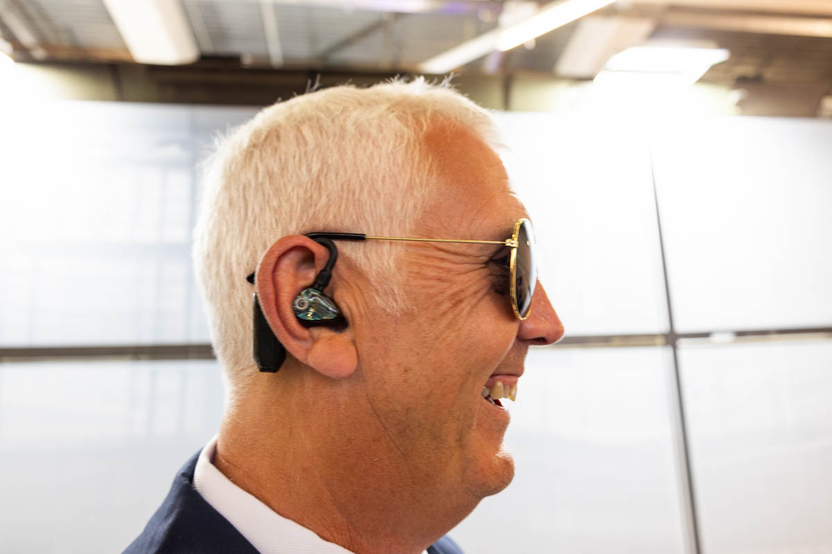 iFi audioは、空港や飛行機内をイメージした展示ブースを展開。グローバルセールスのヘッドであるマイルス・ロバーツ氏はさしずめパイロット、新製品ムービーも空港でのアナウンスを模した遊び心溢れるものとなっていた。