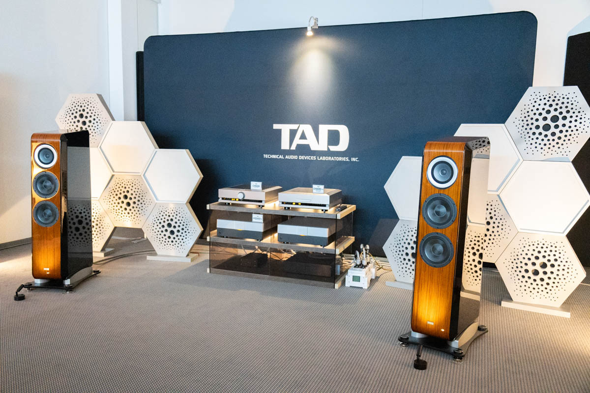 またメインエリアでは「TAD-GE1」のフロア型スピーカーに、パワーアンプ「TAD-M2500TX」2台によるモノラル再生をデモ。プリアンプは「TAD-C1000」、SACDプレーヤー「TAD-D1000TX」で、GE1のさらなるポテンシャルを引き出す提案にも力を入れる。