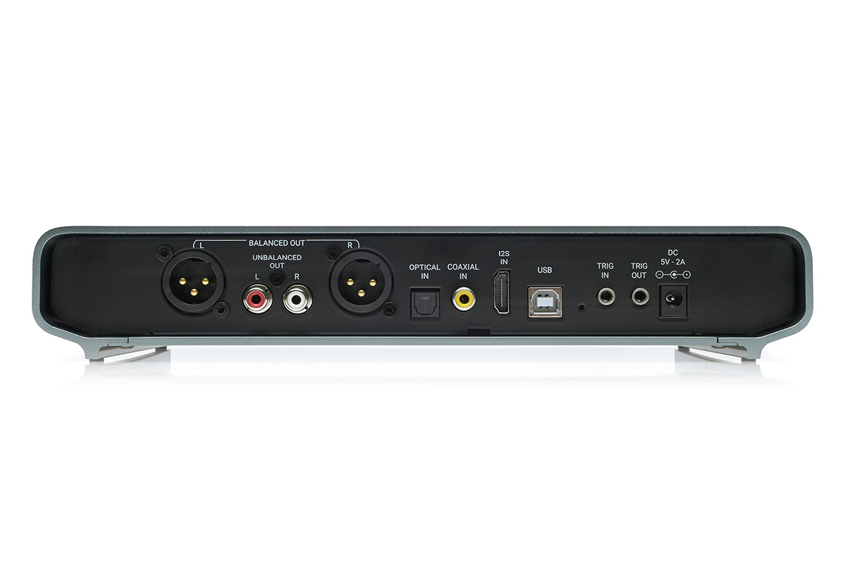 デジタル入力はUSB2.0、S/PDIF同軸、S/PDIF光角、I2S(HDMI – PS Audio方式準拠)。アナログ出力はRCA、XLR(デジタルボリュームによる音量調整可)を搭載。また、機能として8種類のデジタルフィルターを用意する。外形寸法は270W×50H×150Dmm、質量は2.25kg。