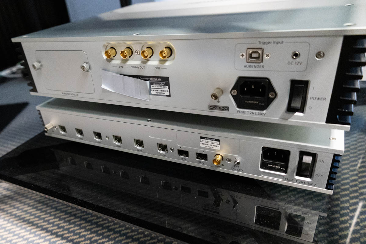 ネットワークオーディオの古株ブランドのひとつ、aurenderからは、15周年記念となるネットワークプレーヤー「A1 15th anniversary」、初のネットワークハブ「NH10」、クロックジェネレーター「MC10」、3筐体式のオーディオサーバー「N50」が登場。