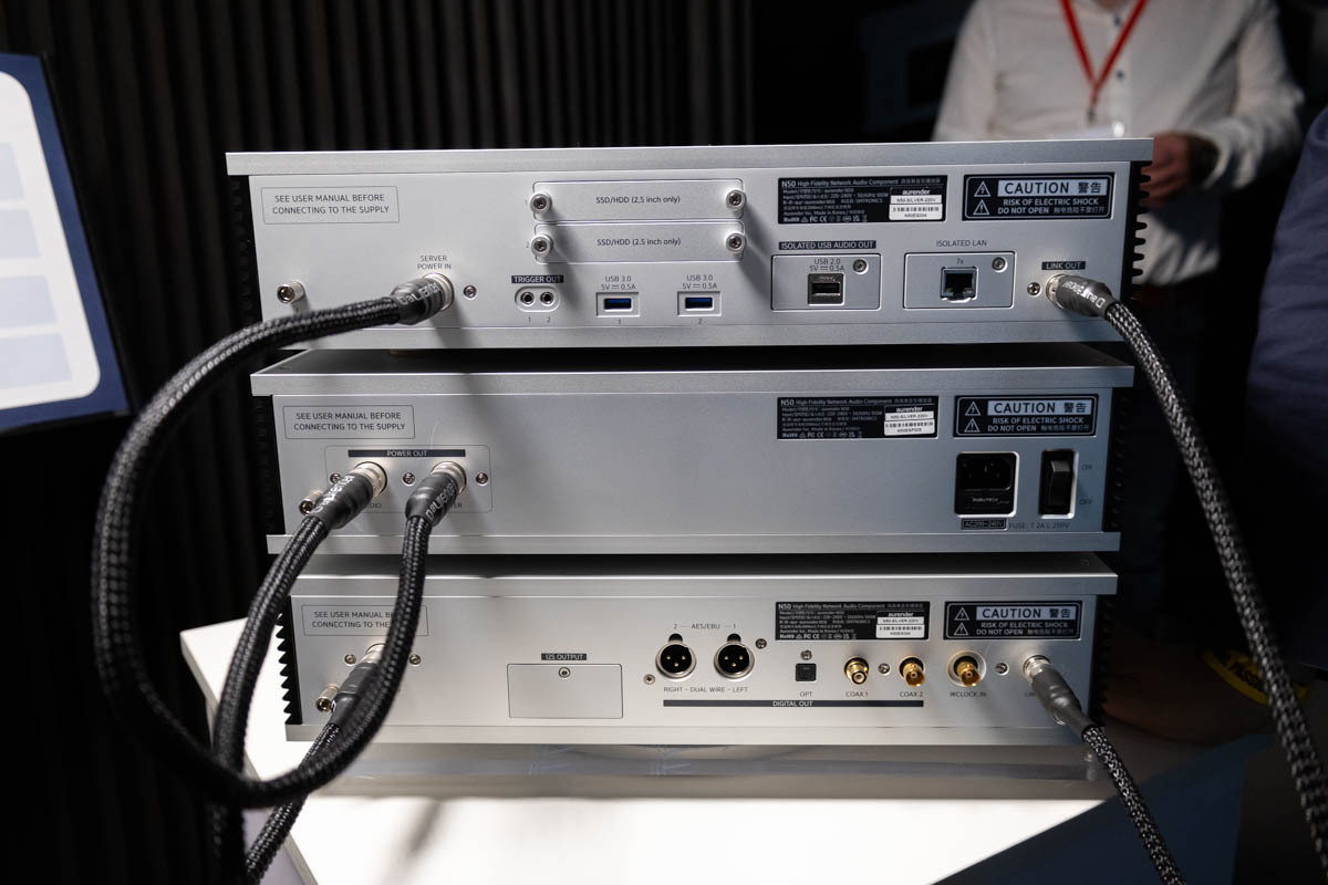 「N50」はフラグシップとなるオーディオサーバー/トランスポートで、電源部、デジタルボード、メイン基板(CPU等)が独立した構成となっている。背面をみると、オプションでストレージを追加できる模様。機能的にはaurenderのネットワークトランスポートを役割ごとに別の筐体としてわけることで、さらなる音質の向上を狙っているものと推測される。