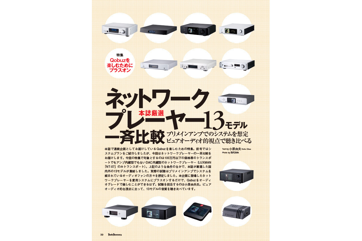 『季刊・オーディオアクセサリー』では、話題沸騰中のストリーミングサービス「Qobuz(コバズ)」を楽しむための連続企画をお届けしています。前号ではシステムプランをご紹介しましたが、今号の特集では“いま選ぶべきネットワークプレーヤー「13モデル」”を一挙比較検証しました。