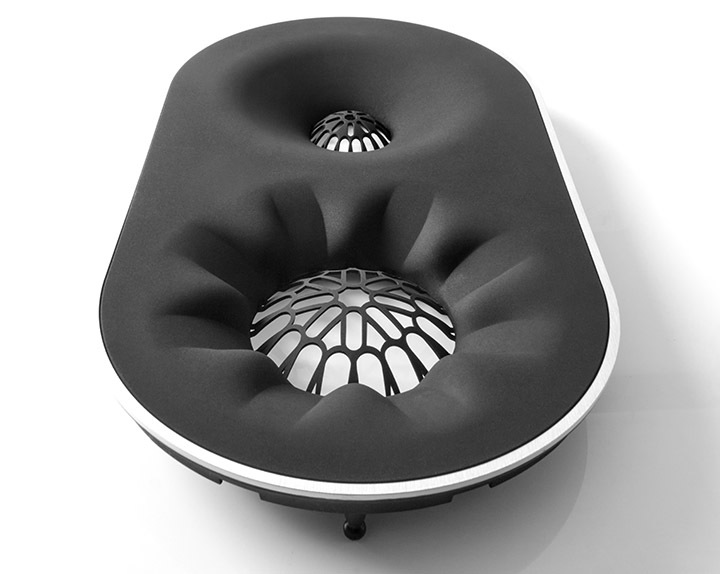 ミッドレンジユニットには、独自技術「n-compassテクノロジー」を投入。二重構造のウェーブガイドであり、深い曲率のウェーブガイドが中域エネルギーを最適に制御してウーファーとのつながりを滑らかにし、浅い曲率のウェーブガイドが音の拡散性を高めてトゥイーターとのつながりとスイートスポットの広さを改善する。