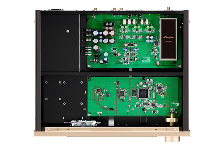 これに加え、DAC出力部に新規設計のローパスフィルター「Direct Balanced Filter回路」を搭載。最適化したカットオフ周波数とフラットな通過域特性によって位相回転を最小限にとどめており、厳選した素子と相まって優れた音楽再生を実現するという。