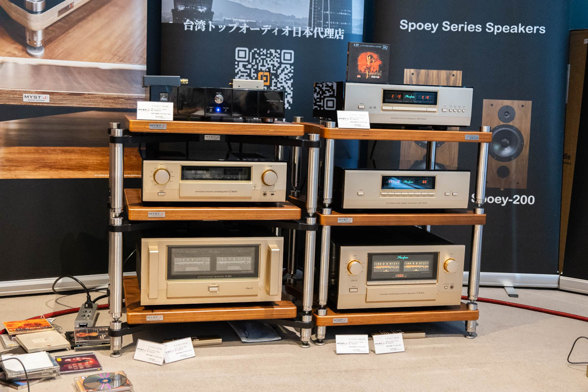 今回はブックシェルフ型の「Spoey 155」と、フロア型の「Spoey 230FS」の2モデルをメインに試聴ブースを用意。アキュフェーズのプリ&パワーアンプを活用していたが、これはホーム商会で組み合わせを試した際に非常に音質クオリティが高かったことから、この組み合わせでOTOTENデモを行うことにしたのだという。