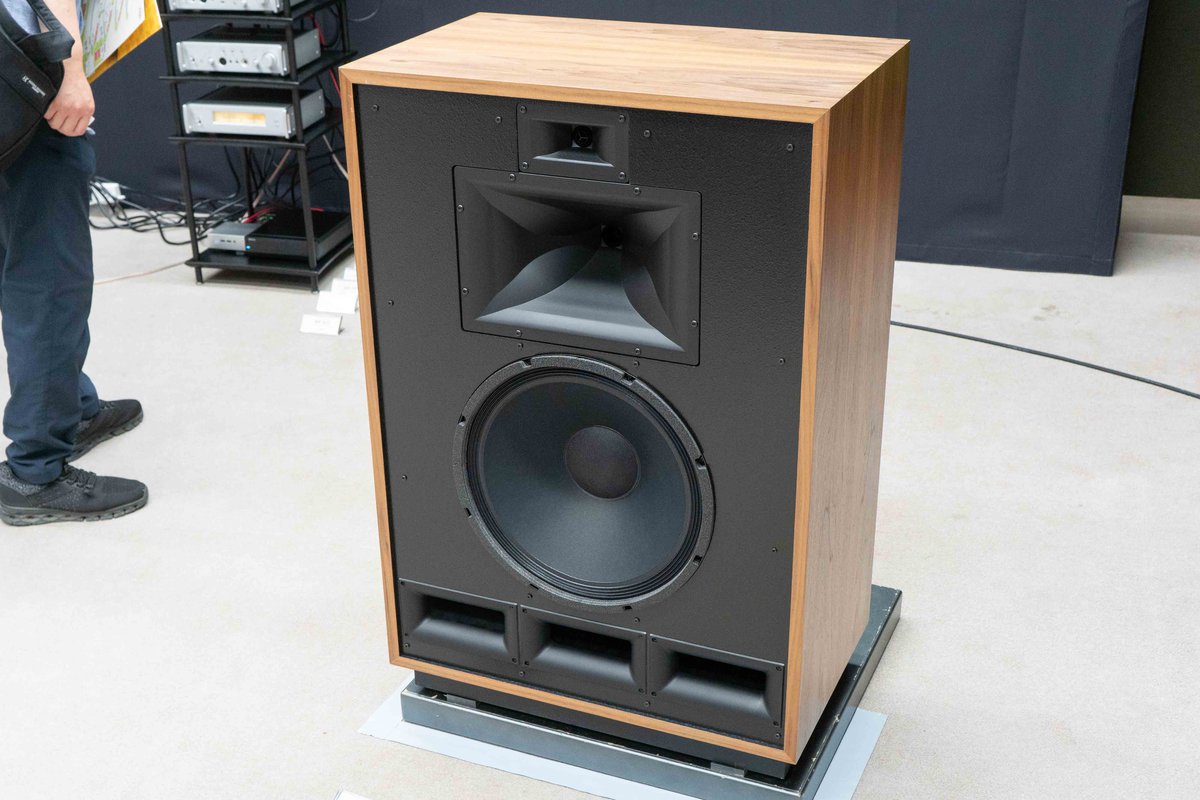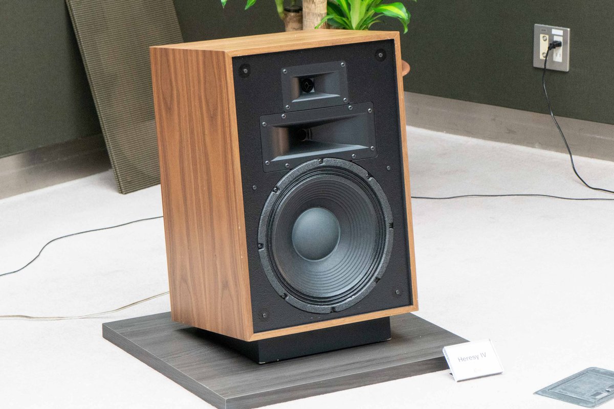 スピーカーシステムは、高域用に25.4mmチタニウム振動板・コンプレッションドライバー「K-107-TI」、中域用に44.5mmポリイミド振動板・コンプレッションドライバー「K-702」、そして低域用に381mm繊維複合材料を用いたコーン・ウーファー「K-33-E」によって構成された、Klipschの3ウェイ・バスレフ型フロアスピーカー「Cornwall IV」がセッティングされていた。
