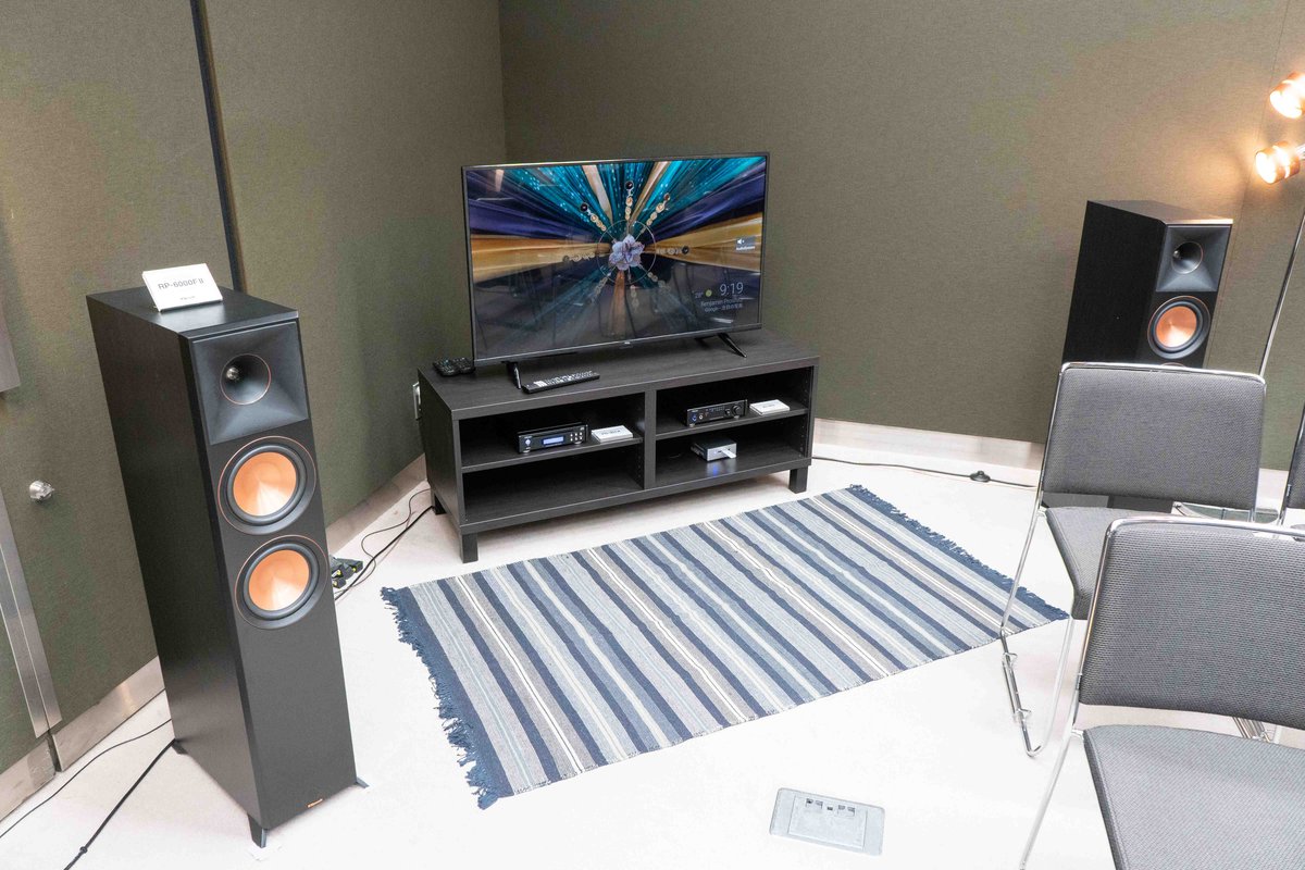 テレビとの組み合わせを想定したシステムも用意されており、ARC対応のHDMI端子を搭載したプリメインアンプ「AI-303」に、25.4mmチタンドーム・LTS・トゥイーターと165.1mmセラメタリックコーン・ウーファーを搭載したKlipsch「RP-6000F II」がセットされていた。