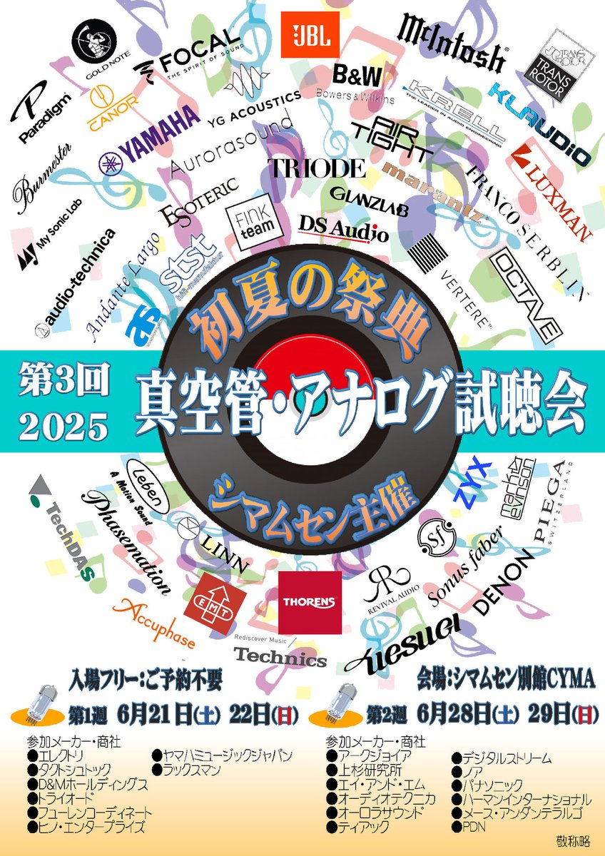 シマムセン主催「真空管・アナログ試聴会 2025」の第2週目、6月28日、29日に開催!