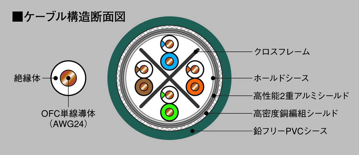 ノイズシールド効果を追求する「N-ZEROコンセプト」はそのままに、新開発の高純度無酸素銅導体を採用し、音声信号の伝送ロスを低減することに成功。さらに高性能2重アルミシールドと高密度銅編組シールドを組み合わせた独自の3重シールド構造により、外部からのノイズ干渉を排除している。