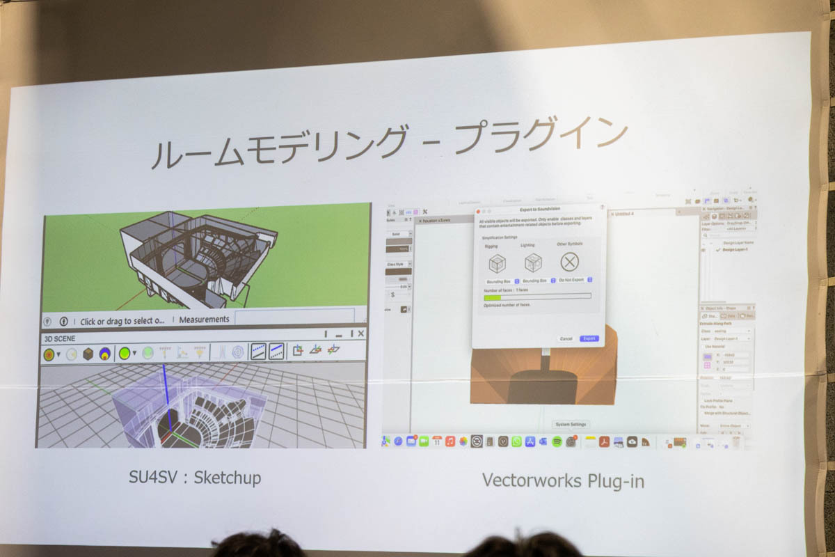 コンサート現場での音響設計は、まずホール等の図面を確認し、どの位置にどのようにスピーカーやアンプ等を配置するかをシミュレートするところからスタートする。興行主がどのような音を求めているのか、会場にはどのような制約があるのかといったさまざまな条件を踏まえて仕様の策定が必要で、そのシミュレーションを助けるためのソフトウェアも独自に用意する。