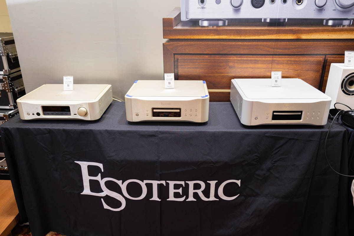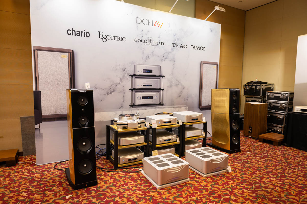 エソテリックは、中国・香港を担当するDCHAVという代理店のブースにて出展。ほかにもTANNOYやGOLDNOTE、charioの代理業務を担当している。GrandiosoシリーズのCDプレーヤー(K1XSE)、アナログプレーヤー(T1)をメインに据え、「Stirling III LZ」などを使ってデモンストレーションを行っていた。