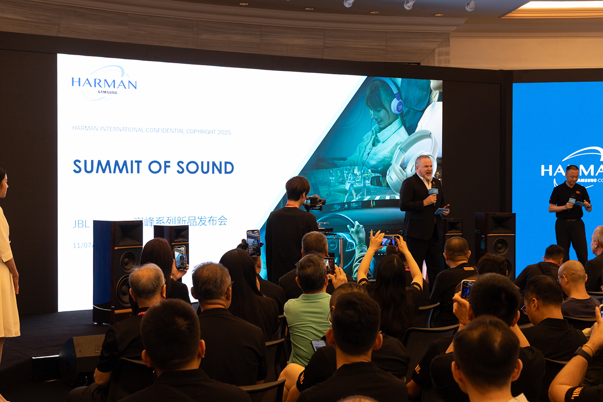 ハーマン・インターナショナルは7月11日(金)、上海インターナショナルオーディオショウの会場にて、新型スピーカー「Summit」シリーズ3機種のアジアプレミアを実施。ミュンヘン・ショウでグローバルお披露目された新プロジェクトの、アジア初披露となる。広い会場にも関わらず立錐の余地がないほどのプレスや関係者が集まり、中国におけるJBLブランドの人気の高さをうかがわせた。