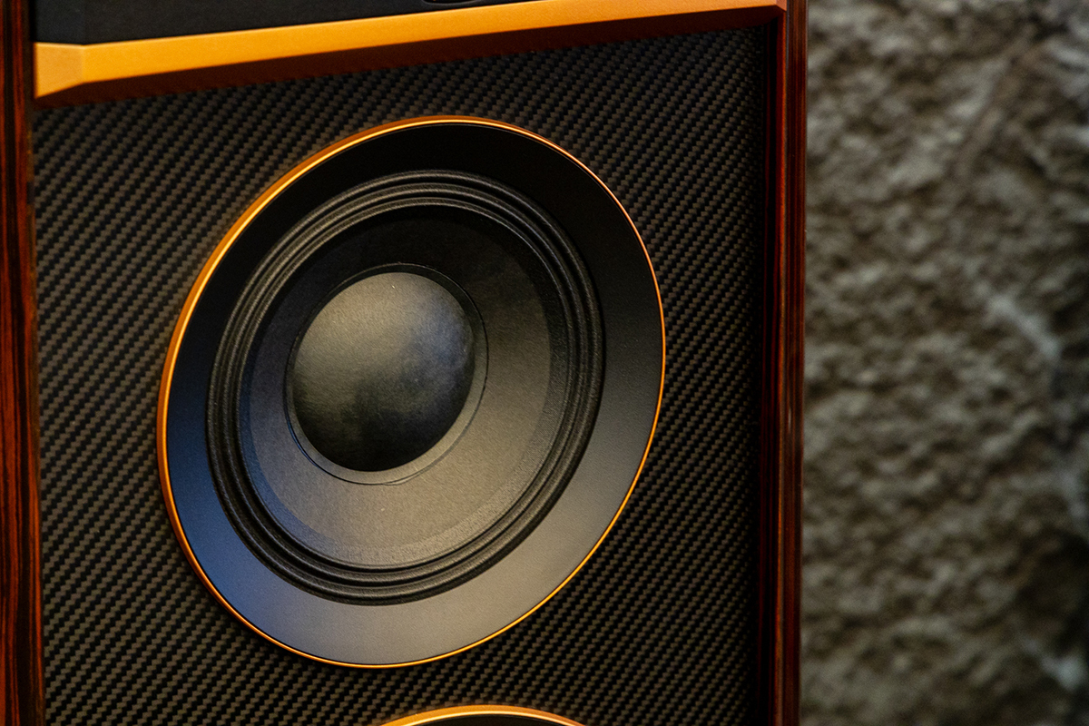 新製品の最上位モデルとなるSummit Makaluは、独自のHC4コンポジットコーンを採用した300mmウーファーと200mmミッドレンジ、D2コンプレッションドライバー+HDI Sonoglassホーンによる3ウェイ3スピーカー。ホーン形状を、Project EVEREST DD67000までのような横長形状ではなく、同社スタジオモニターシリーズでも採用されているHDI(High Definition Imaging)形状とすることで、より広い周波数帯域に渡る一定の指向性パターンを狙ったものだ。
