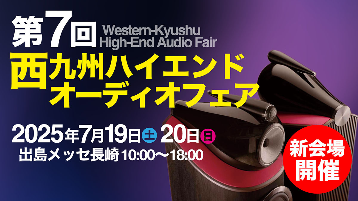 マックスオーディオが主催するオーディオショウ「第7回 西九州ハイエンドオーディオフェア」が、7月19日(土)と20日(日)の2日間、出島メッセ長崎1階の特設会場(JR長崎駅西口直結)にて開催される。