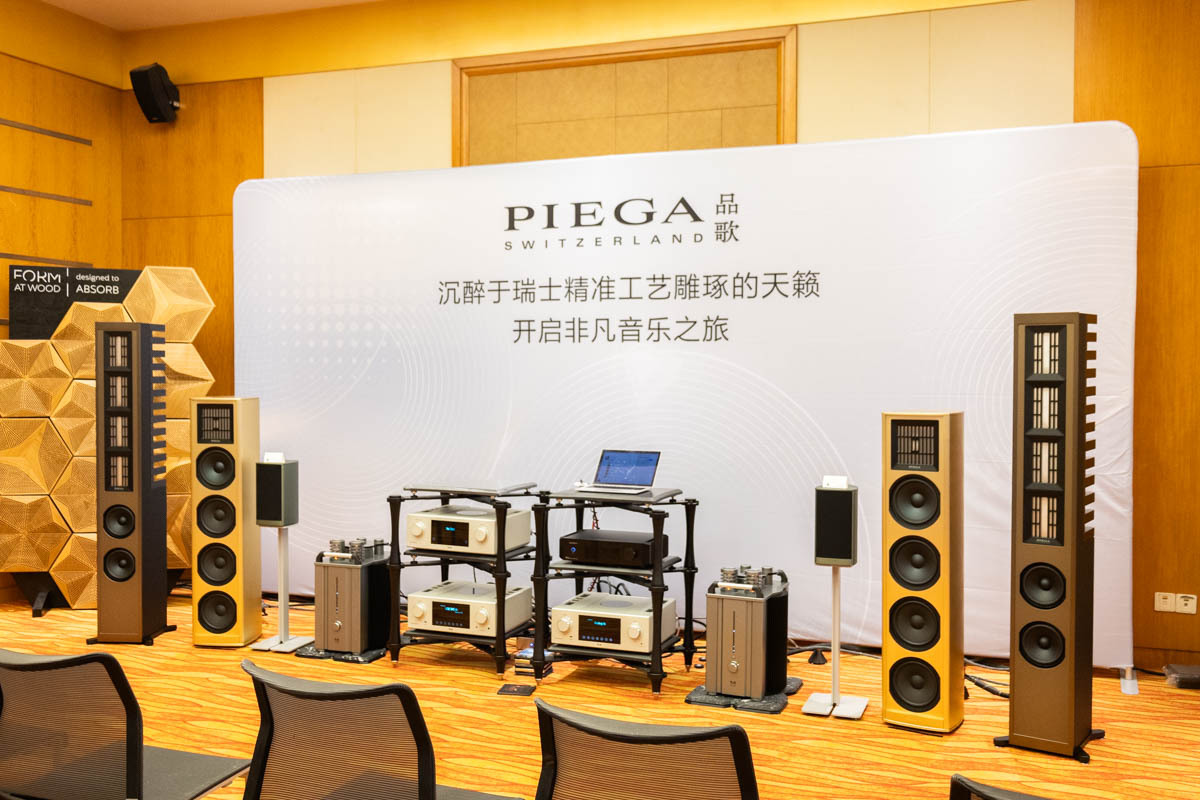 ピエガはスリムなデザインのアルミ・キャビネットと、リボントゥイーターが特徴のスイスブランド。今回のショウでも、トップラインの「Master Lineシリーズ」、「Coax GEN2シリーズ」、最新の「Premium GEN2シリーズ」、それに小型の「Ace」まで主力ラインナップを一気に展示する。