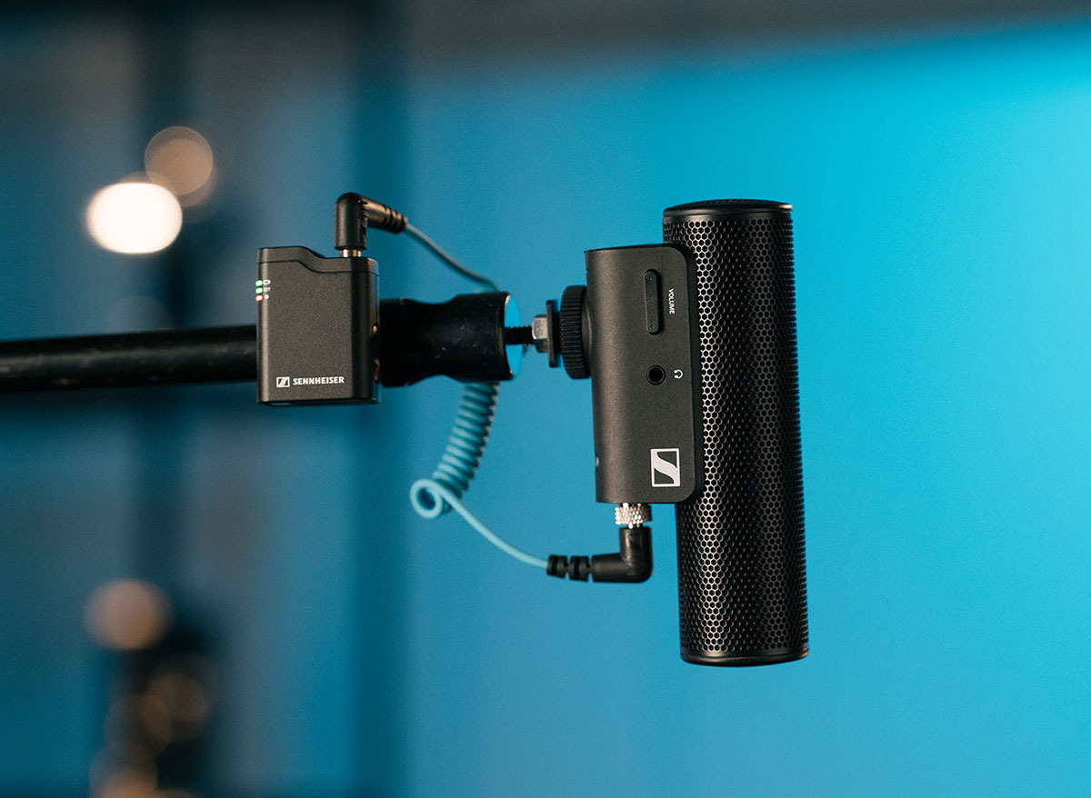 なおマイク部にはロック可能なラベリアコネクターも搭載され、市販(同社製品に限らず)のマイクを繋ぐこともできる。その一例としてゼンハイザーの「MKE 400-II」との組み合わせも紹介された。「Profile Wireless 1-Channel Set」のマイクは無指向性だが、こうすることで指向性を備えたワイヤレスブームマイクシステムを構築可能というわけだ。