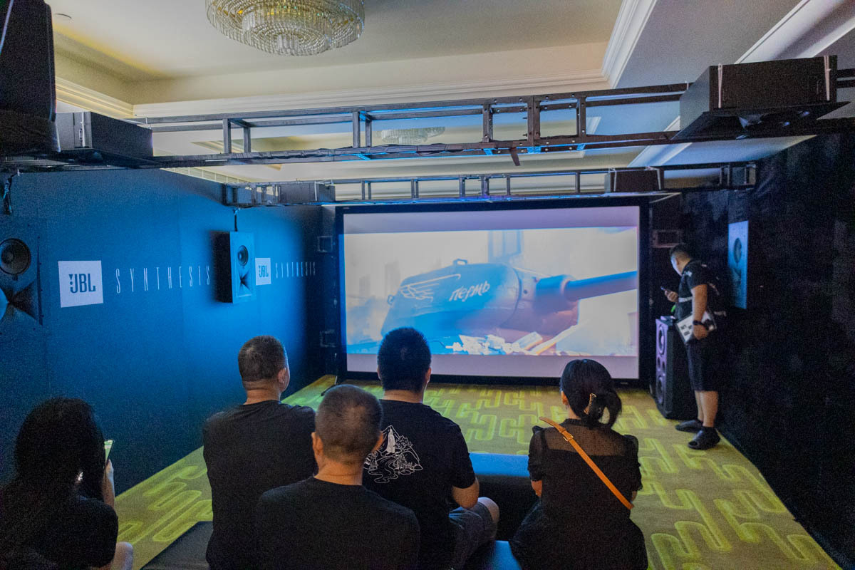 そのほかJBLの “カスタムインストールライン” であるJBL Synthesis、アメリカのスピーカーブランドPERLISTENも本格ホームシアタールームを展開。ホームシアタールームは、ホテルの個室を完全に暗室にしてデモンストレーションしているエリアも多く、写真が撮りづらかったが、JVC、ViewSonic、BenQなど大型プロジェクターブランドも多く出展しており、ホームシアター市場人気の高さも伺わせた。