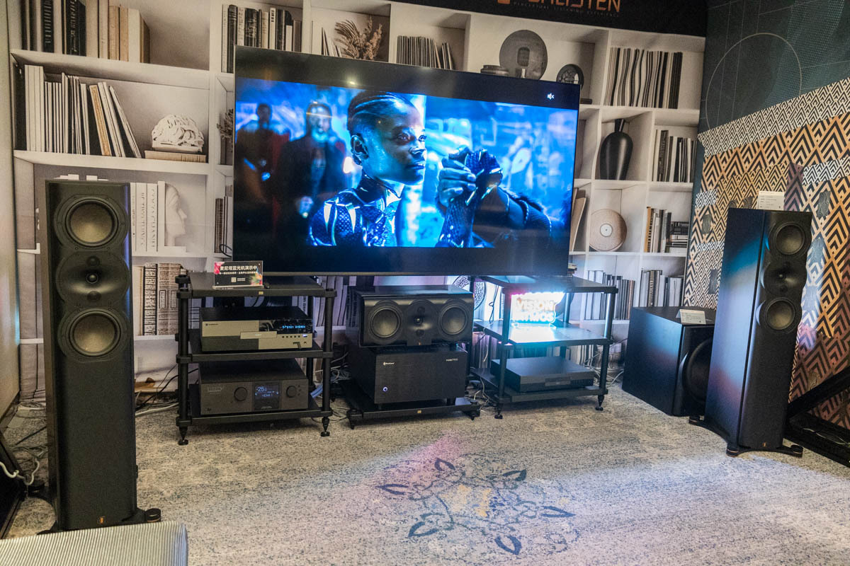 JBLやREVEL、ソナス・ファベールなどの “インウォールスピーカー”(日本未展開)が多く展示されていたことも印象的だったが、Sound UnitedグループもBowers & Wilkins、マランツ、CLASSEを中心としたホームシアタールームを展開(デノンは見かけなかった)。『エブリシング・エブリウェア・オール・アット・ワンス』など洋画を中心にデモンストレーションを行っていた。