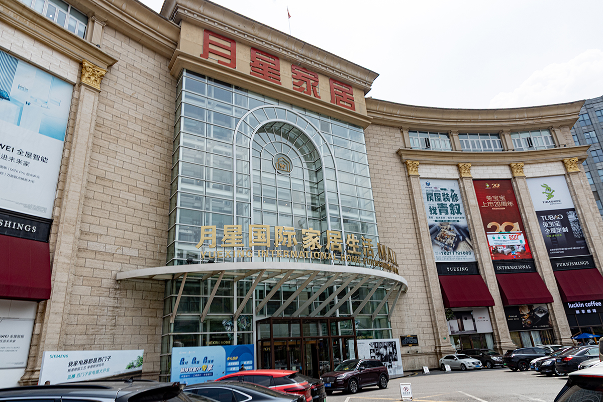 2000年4月に上海市北西部にオープンした上海月星家居広場は、その名のとおり10万平米の敷地に様々なブランドのテナントが入った家具の百貨店である。入っているブランドはミドル〜ハイブランドが中心。机や椅子といった家具だけではなく、さまざまな家電も販売している。