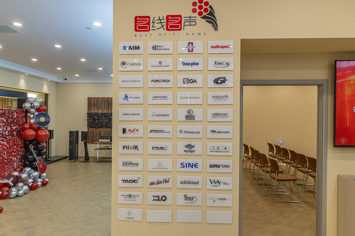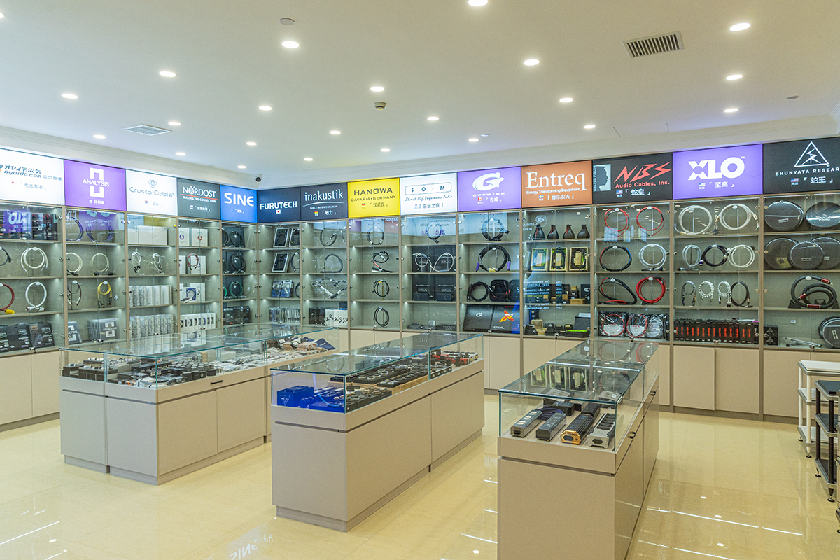 「名線名声」というそのお店はアクセサリー専門店で、高級ケーブルのみを取り扱っている。オヤイデやフルテックといった日本ブランドの名もあった。フランコ・セルブリンのスピーカーをメインとした試聴室も用意され、様々なケーブルがテストできるという。