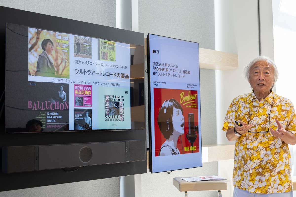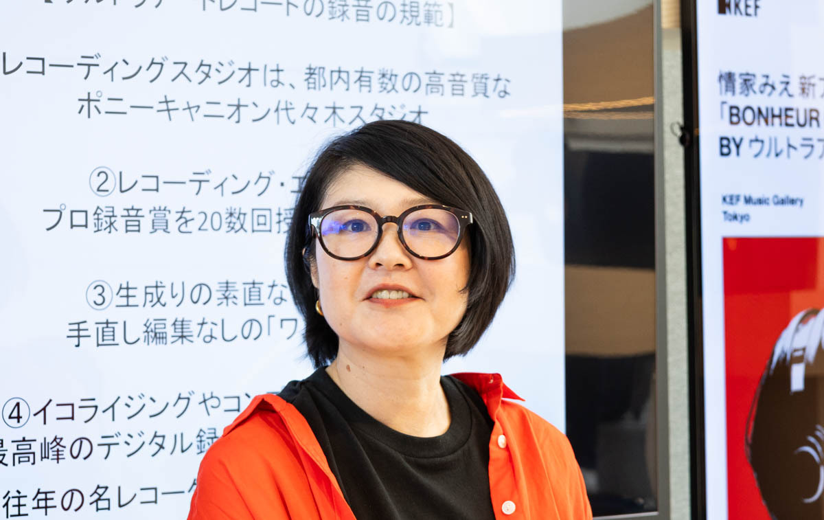 良質な録音を求めるオーディオファンに向けた音楽制作を行うレーベル・UAレコード(Ultra Art Record)の最新アルバム、情家みえ『ボヌール』が9月10日より発売される。その発売記念イベントが、表参道のKEF Music Gallery Tokyoにて開催された。