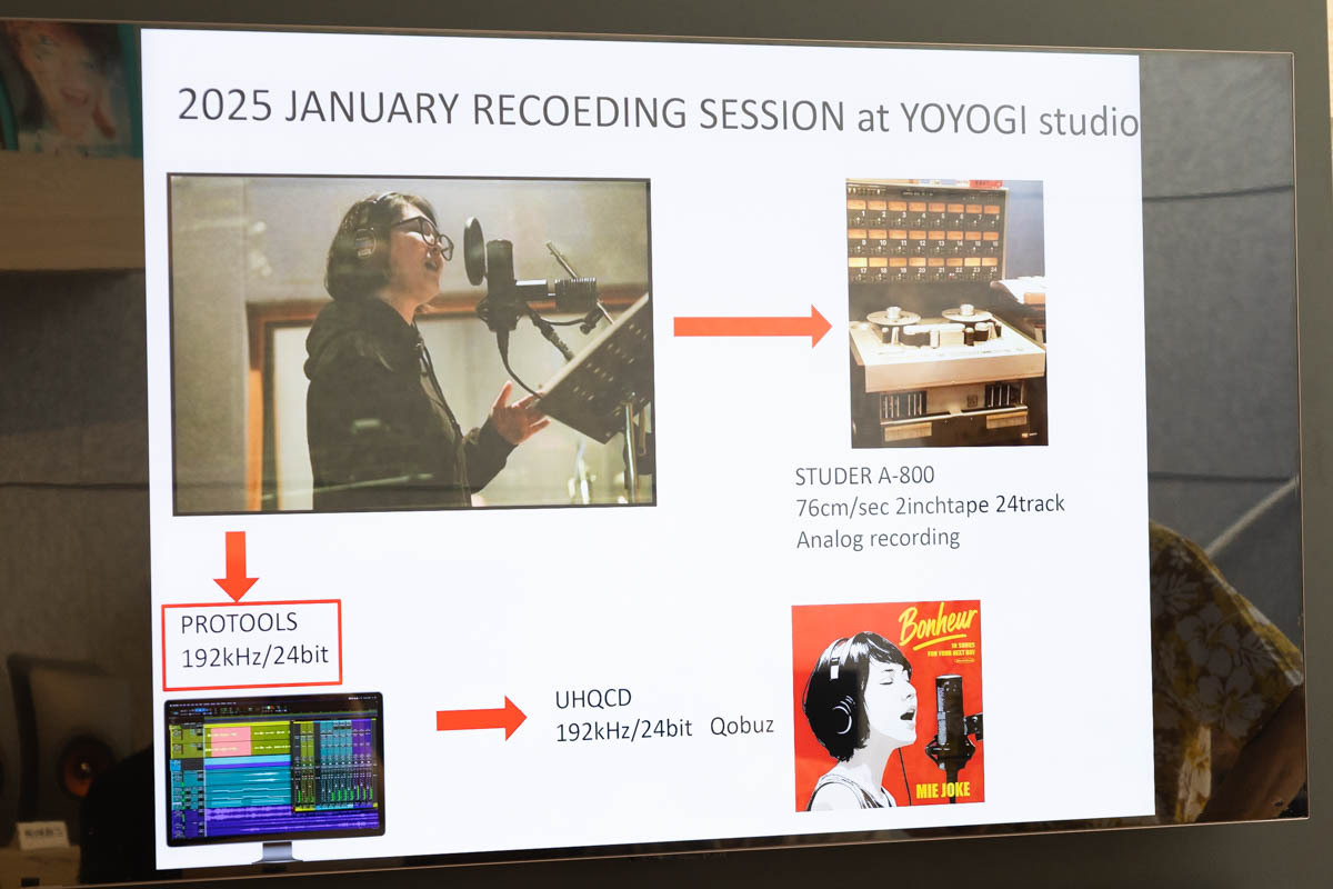 1曲目は疾走感のある「ラバー・カムバック・トゥ・ミー」からスタート。MQAとの聴き比べでは、ピアノの階調の細やかさや彼女が息を押し出すさまなどがより精緻に見えてくる。ドラムの低域の切れ味の良さにも息を飲む。一緒に試聴していた情家さんも、「よく私も歌いきったな!」と録音時を振り返って作品の出来に自画自賛。