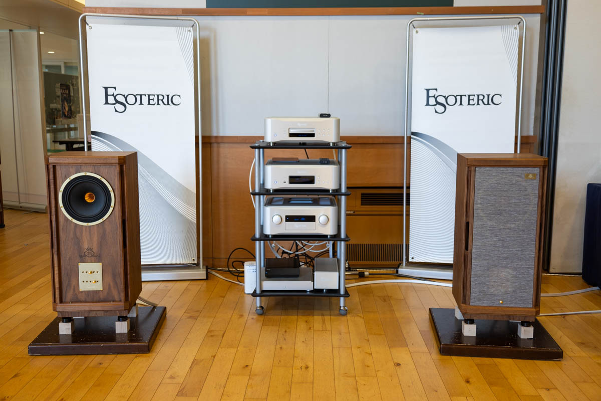 ティアックは、ティアック500番台×クリプシュ「Cornwall」という組み合わせと、エソテリック×タンノイ「Stirling III LZ Special Edition」という2つのデモブースを作成。