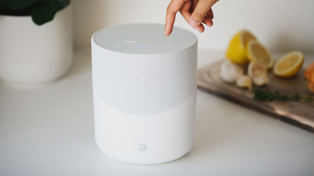 Omni-Hybrid設計によるスピーカーは、前述の通り角度をつけて上向きに放射する133mmウーファーと、互いに45度オフセット配置された2つの19mmトゥイーターで構成。 ウーファー上部のカスタム設計の音響反射板により、不要な音の歪みを拡散させながら、ドライバーの高周波数をスピーカーから外側へ方向転換し360度のサウンドステージを創出すると同社は説明している。