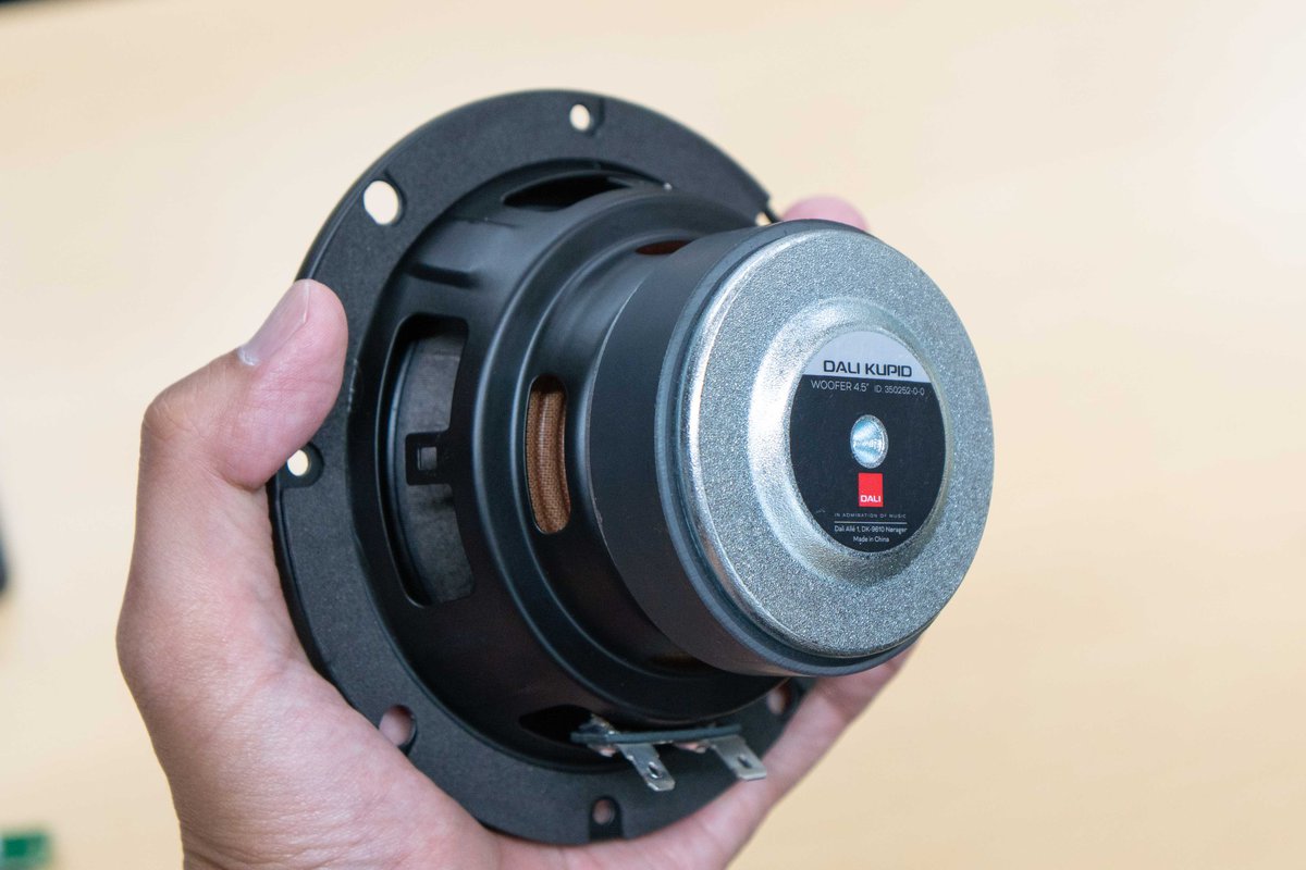ウーファーには、小口径なKUPIDに最適なスフェリカル型(球型)を採用した新開発の115mmペーパー&ウッドファイバーコーン・ウーファーを導入している。スフェリカル型コーンはトランジェントの面で課題があったが、アルミカプラーを用いて補強することでトランジェントの強化を成し得ている。