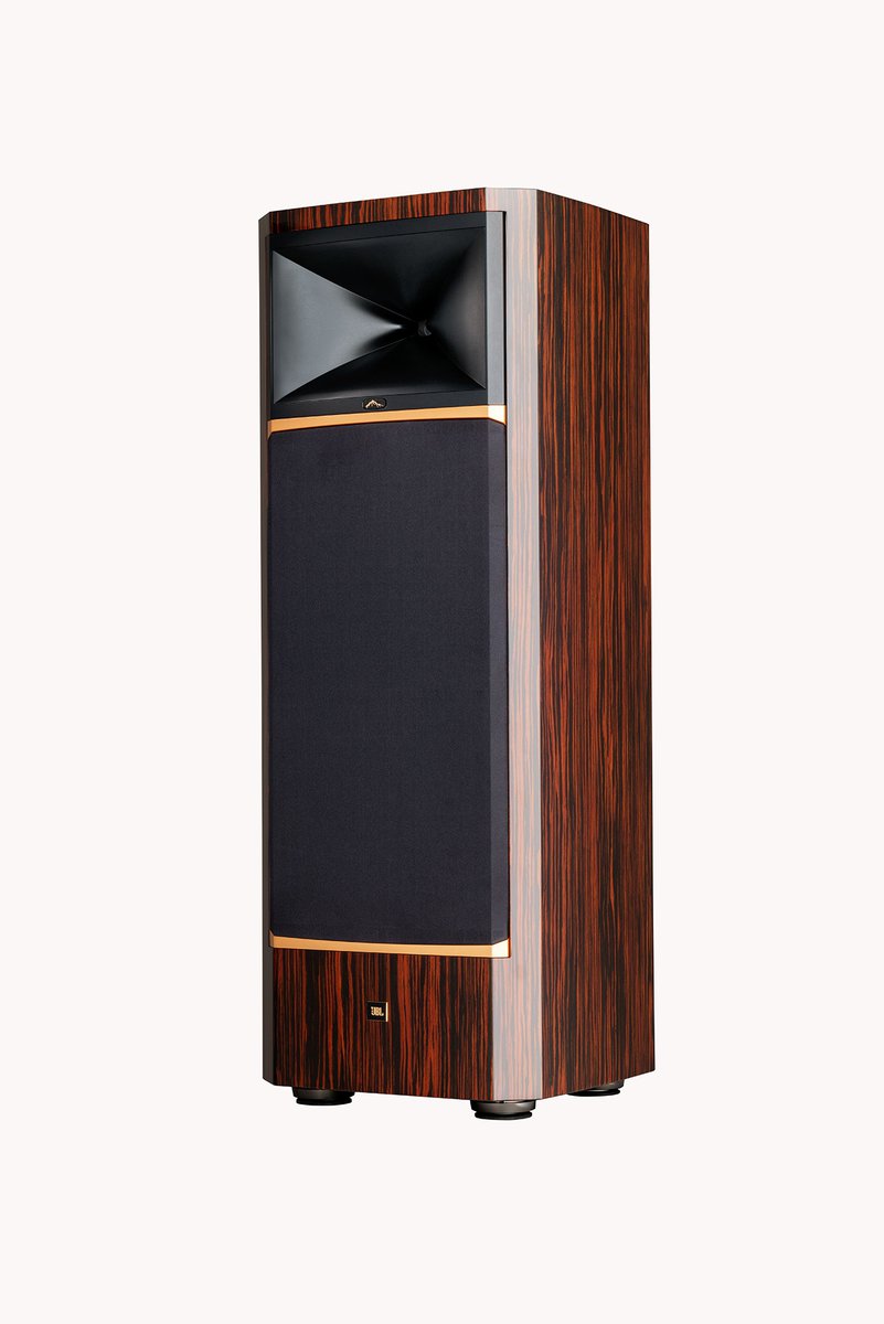 キャビネットは高級感をもたせたハイグロス・エボニー天然木突板仕上げが施され、カーボンファイバーと一体化した強固なフロントバッフルや綿密なブレーシング構造により不要な共振を排除。JBLカスタムのIsoAcoustics(アイソアコースティクス)製アイソレーション・フィートを備えることで振動対策も図っている。