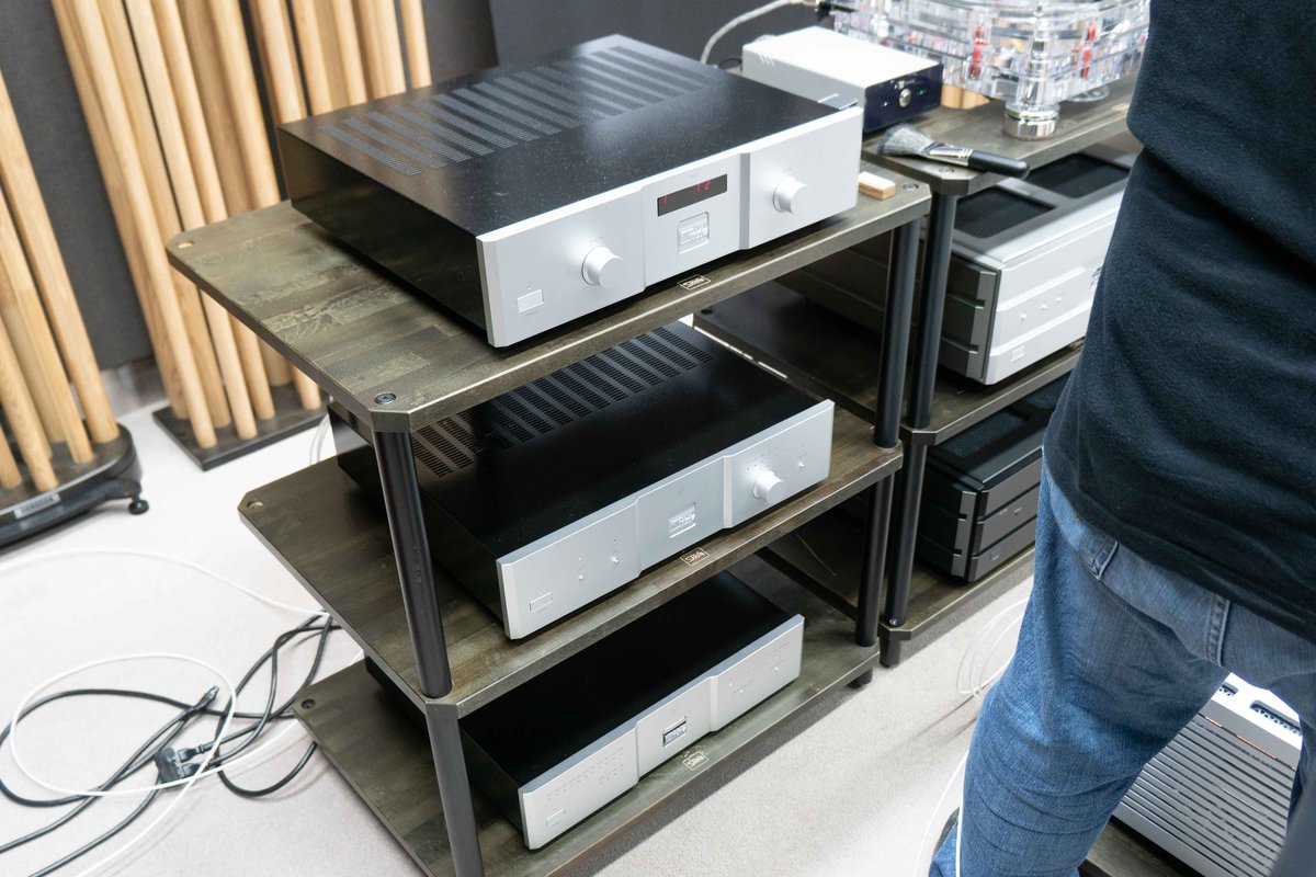 PASSブランドからは参考出品としてプリアンプのハイエンドモデル「Xs Pre2」が展示されていた。完全に分離設計された3つのボックスから構成されるプリアンプであり、デュアルモノ電源を採用、チャンネル毎に独立したデジタル電源であるダブルシールドトランスや、容量増加、プリレギュレーターが追加されるなど、細部にわたり高音質技術が搭載されている。