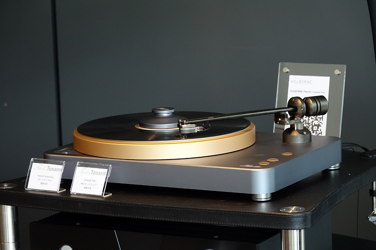 音出しデモには、ELACのブックシェルフスピーカー「Concentro S503.2 WALNUT」などを使用。日本市場にはまだ導入されていないTHALES Tonarmのターンテーブル「THALES Reference」も組み合わされていた。