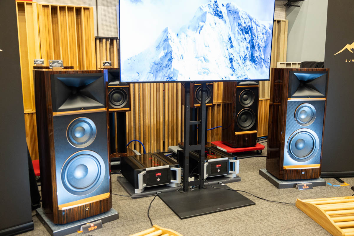 「4369」は、伝統のブルーバッフルに、横長のホーンそして38cmウーファーと、まさに「これぞJBL!」と言いたくなるシグネチャーな一台。同時に国内発表されたJBLのHiFi向けシリーズSummitシリーズのトップライン「Makalu」より一回り大きいサイズの堂々なるフラグシップモデルとなる。