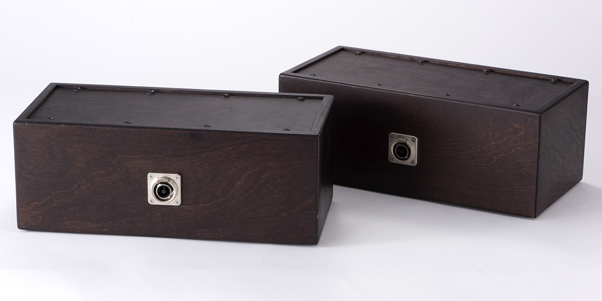 特徴的なのはインピーダンス補正用のパッシブ回路が収められた外付けボックスが、左右1台ずつセットとなっており、スピーカー本体と専用ケーブルで接続して使用する点。デジタルプロセッサーでは解消できないスピーカーのインピーダンス変動を補正するものとなっている。