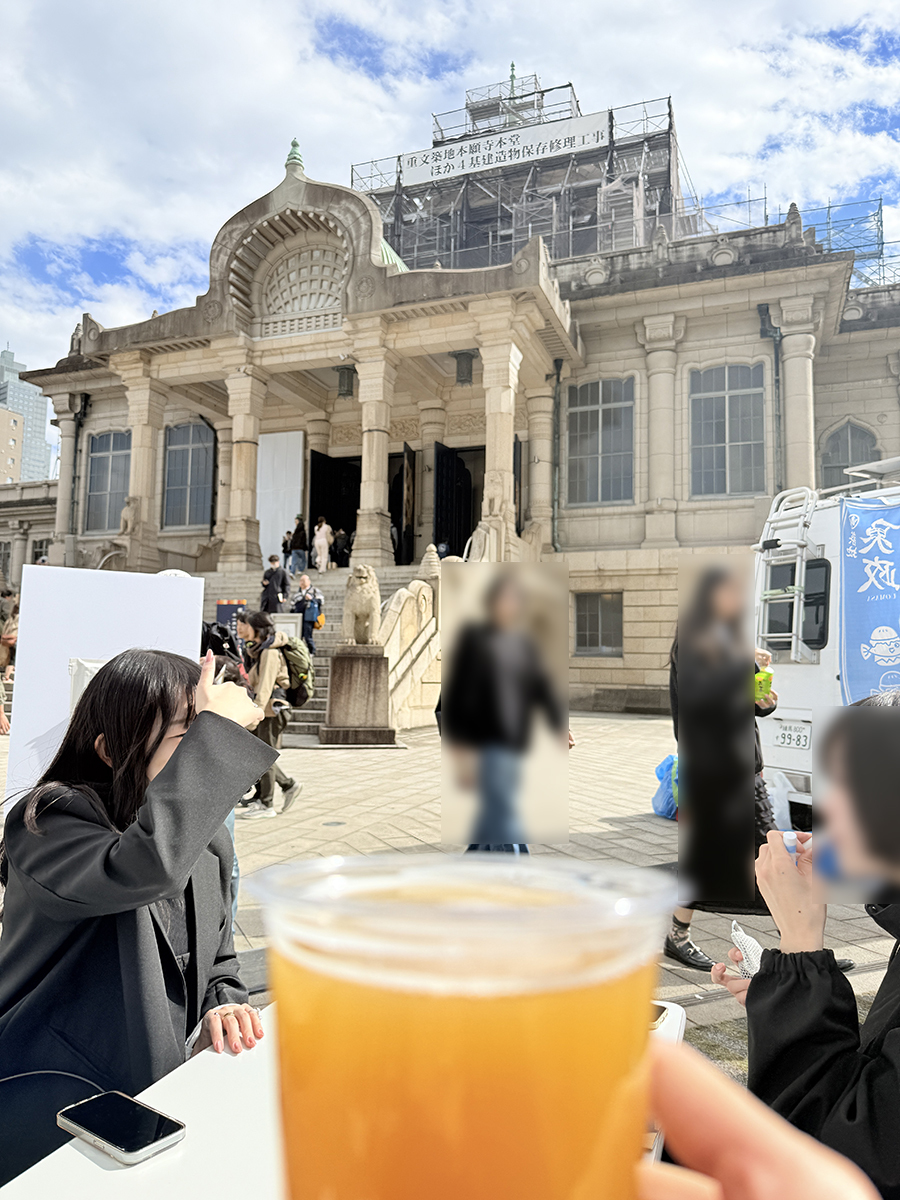 築地という場所がらか、海外からのお客さんも多く、着物をリメイクしたアパレル製品や、お香体験、和テイストの食器などにも関心が高い。配布される小冊子も日英併記、浮世絵調の女性がヘッドホンをしてDJをやるという、なかなかに粋な演出である。