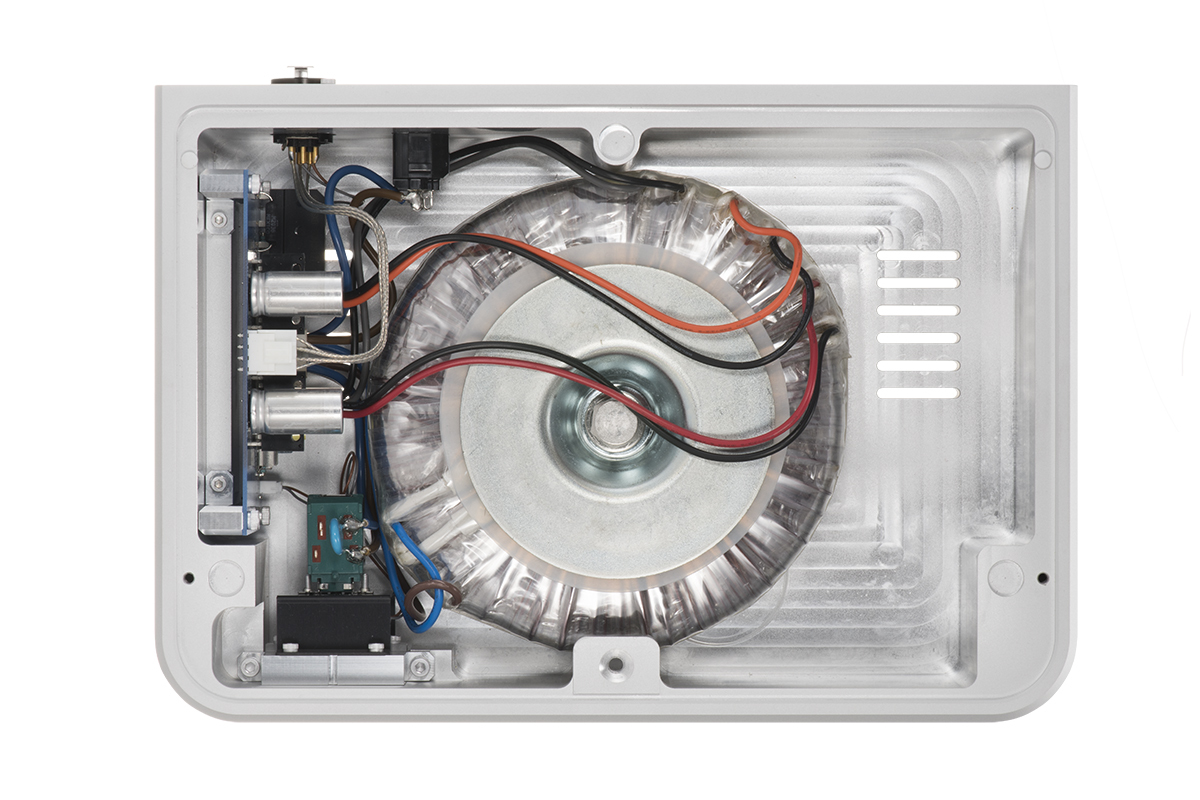 シャーシ素材すべてに導電率の高い純アルミ素材1070をフルに使用。アンプ部・電源部ともにメインシャーシは1070インゴットから削り出し、継ぎ目や連結のない完全なワンピースで機械的ストレスのない構造を実現している。極薄・軽量なトップカバーは、同じ1070材を使用するが、メインシャーシに1点止めすることで組み立てストレスも排除している。