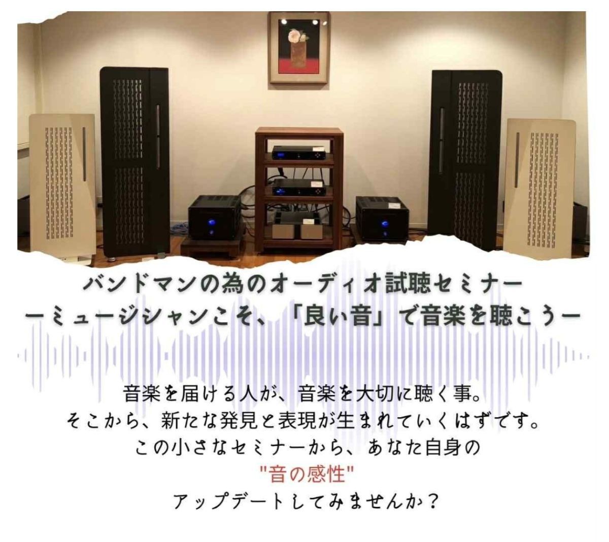 また、「普段はなかなか触れられない “究極の音” が音楽家の感性にどんなインスピレーションを与えてくれるか。それを知っていただけたら」とハイエンドオーディオの世界に触れる時間も用意。「この小さなセミナーからあなた自身の “音の感性” をアップデートしてみませんか。この機会にぜひご体験ください」と来店を呼びかけている。